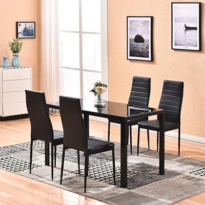 Our models help expand and accent any room, especially the dining room, in order to create the perfect space to share meals, converse over coffee or simply leaf through a favorite book or magazine. 4.5 out of 5 stars. Kitchen dining table set,5 pieces modern dining room table set w/tempered glass top & 4 high back leather chairs dinette set for 4,sturdy metal frame kitchen breakfast furniture counter height,white. Find the perfect home furnishings at hayneedle, where you can buy online while you explore our room designs and curated looks for tips, ideas & inspiration to help you along the way. Yes, we carry a black product in glass dining room sets.